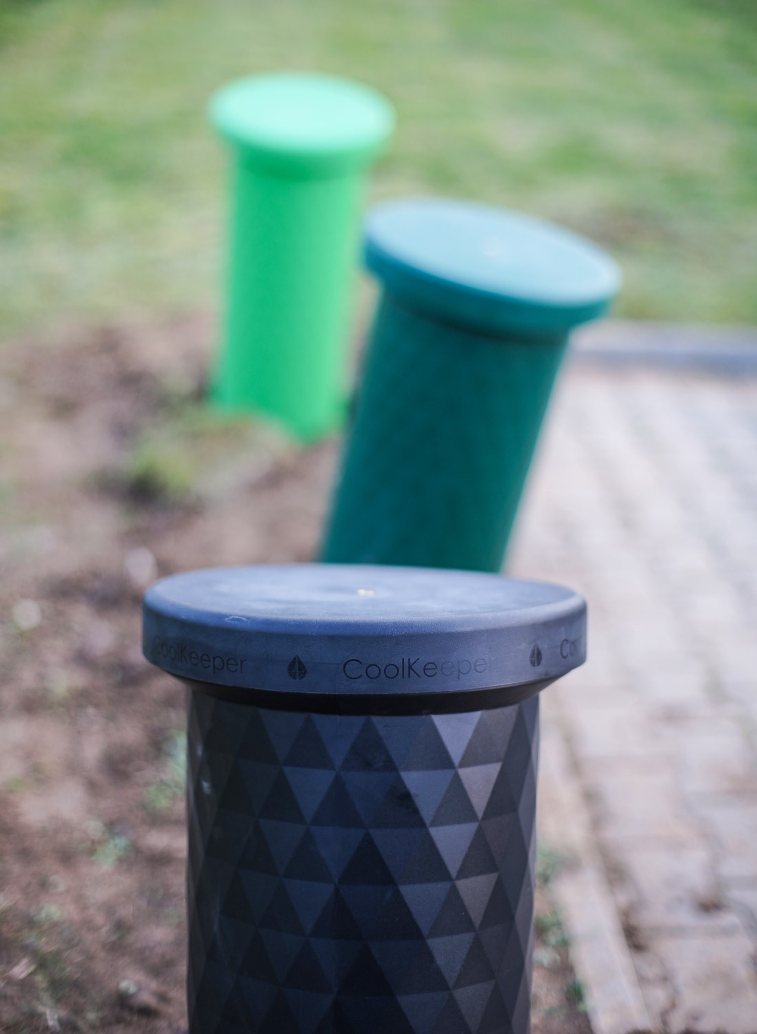 Die klassische Ausführung des CoolKeepers setzt sich aus einem UV-stabilen und lebensmittelechten Kunststoff-Body mit designter Dreiecksstruktur, einem Kunststoffdeckel und einem vielseitigen Getränkehalter zusammen. Einfach die Getränkehalterstange aus dem Body ziehen und frische Getränke genießen!